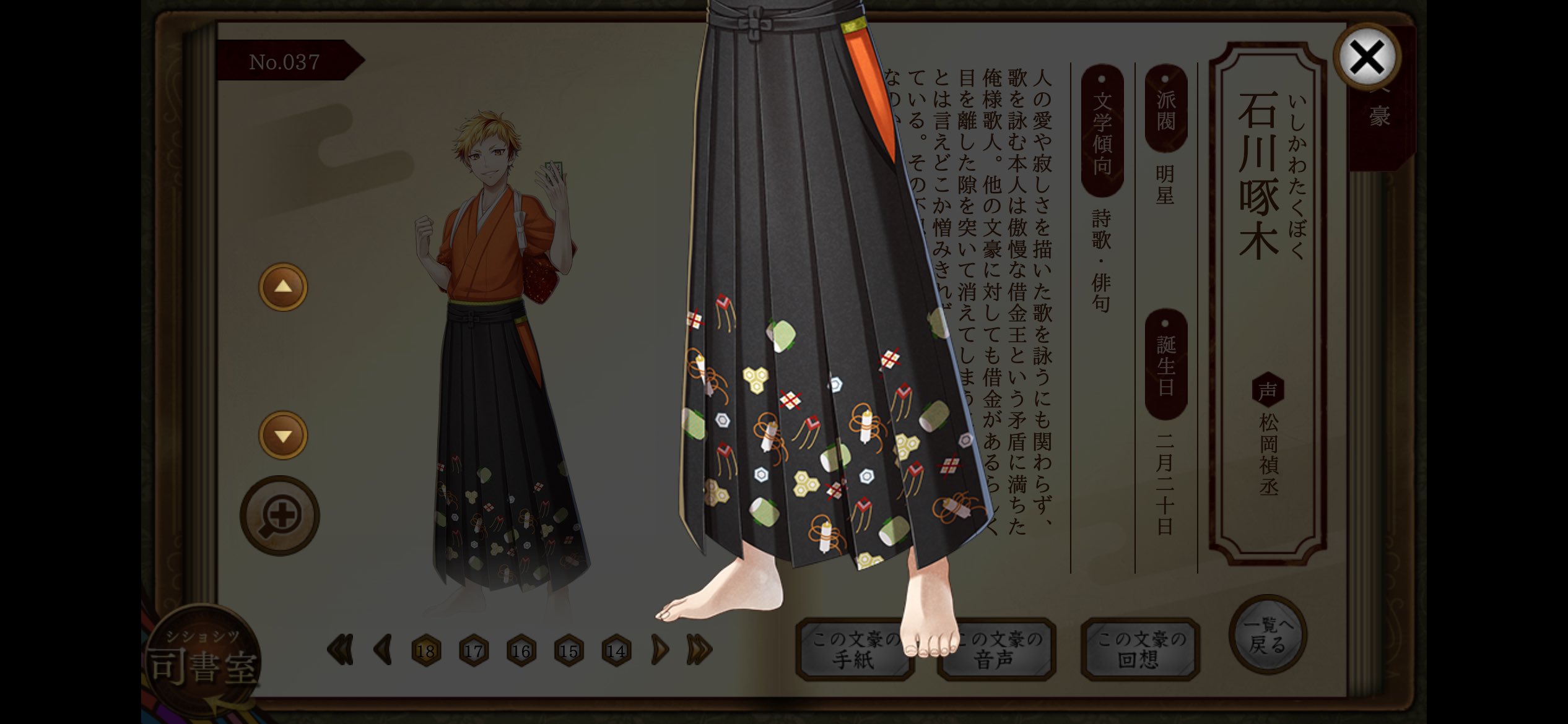 自分が文アルを始めて一番最初に見た回想がこの二人だったのと、「文アル」だからこそ出会えた二人でもあるのでこのペアも本当に好きなのですが今回思いっきりぶん殴られて気絶しました。今から思いきり殴るとあらかじめ言っておいてください。 明星は他派閥のように熱い友情!というより、それぞれを尊重するけど深入りはせず見守っている大人の距離感だなと思っていたのですが、啄木の付き合いが悪くて心配する白秋先生と高村先生、それを「友達が悲しい顔をしている」という多喜二。なんですかこの回想欲張りセットすぎる。こんなに摂取していいんだ。 close 最終的に残ったのは全員幸せになってくれ…という気持ちと最高の回想をありがとう…なアホ語彙の感想でした。神。ありがとう文豪とアルケミスト…。